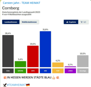 Die meisten von ihnen kommen zu 18,5 % aus Ihrer „SPD- PARTEI“ und die alle haben sich jetzt freiwillig auf die andere SEITE DER „BRANDMAUER“ begeben! – und diese sind jetzt auch als „NAZIS usw.“ zu bezeichnende, sollen jetzt wohl auch von FAESER´s“ „VERFASSUNGSSCHUTZ“ beobachtet werden…..(?)   D_A_R_U_M_:     Die beste Nachricht, warum die „AFD“ in Hessen so viele Zustimmung bei den Landtagswahlen bekam: