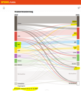 Aus welchen „PARTEIEN“ kommen lt. „DESTATIS“ die bei der BUNDESTAGSWAHL 2021 neu zur „AFD“- zugestossenen „AFD- WÄHLERinnen“ – DAS SIND WÄHLERINNEN, DIE HEUTE VOM „VERFASSUNGGSCHUTZ“ IN DEUTSCHLAND MIT BEOBACHTET WERDEN……