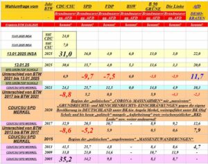 Dank der „CORONA- MASSNAHMEN“ ab 2020 unter heutigen „OBER- BRAND- MAURER- PARTEIEN“ von „CDU / CSU / SPD stieg der „UMFRAGEWERT“ der „AFD“!
