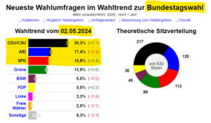 Die „AFD“ hat als heutige „DEMOKRATISCHE“ und „NEUE“ „VOLKSPARTEI“ die „SPD“ schon lange überholt und diese Partei „wahl- umfrage- mässig“ inzwischen zurückverwiesen hinter die „AFD“: