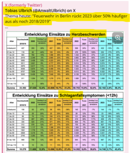 Im 1. Corona- Jahr (ohne „Corona- mRNA Impfungen“) sind die Steigerung gegenüber „vor Corona 1918/19“ noch 12 % gewesen. In den „Impfjahren“ eine Steigerung auf 57 %