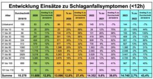 2) Im Bereich der Noteinsätze zu den Schlaganfall– Symptomen waren die Altersgruppen von