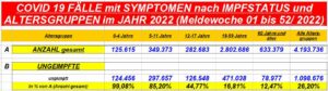 COVID 19- Fälle verschwinden „OHNE IMPFUNG“ mit zunehmenden „ALTERSGRUPPEN“ von 99,08 % auf zuletzt 12,47 %, was einer normalen DURCH „BIOLOGISCHEN“ „IMMUNISIERUNG“ durch unseren „VON GOTT GESCHAFFENEN“ KÖRPER entspricht seit ANBEGINN unserer GESAMTEN MENSCHHEIT seit „ADAM und EVA.