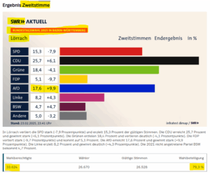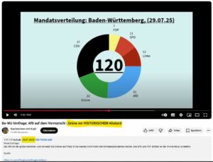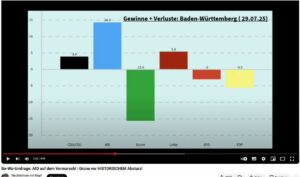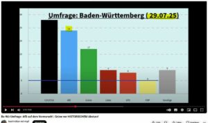 je nach Umfragen zwischen 21 % und 24 % als inzwischen zweitstärkste Kraft in BADEN- WÜRTTEMBERG !!!!