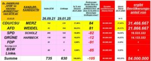 BUNDESTAGSWAHLEN UND WAHLUMFRAGE-ERGEBNISSE ZUR WAHL AM 23.02.2025