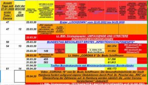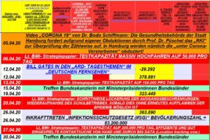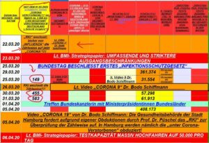 Vergl. in 2. Spalte: das „RKI“ addiert die Sterbezahlen laufend auf, d.h. in unserer Gesamtbevölkerung von rd. 83.000.000 sins seit dem ersten „CORONA- TOTEN“ bis 31.3.2020 etwa 583 Tote beim „RKI“ registriert worden. Bereits am 15.03.2020 wurde vom „Bundesinnenministerium“ damals unter dem „CSU SEEHOFER“ bereits das „ANGST- und PANIKMACHE- PAPIER“ erstellt. Bis dahin gab es in Deutschland noch kaum „registrierte CORONA- TOTEN“ (bis 25.03.2020 erst insgesamt 149 Tote, wobei wir ziemlich von Anfang an wussten, wie und was tatsächlich gezählt wurde – Stichwort „PCR- TEST- ABSTRICHE“!)