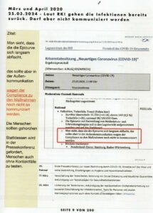 Verwaltungsgericht Baden-Württemberg:„Der Beweisantrag Nr. 4 der Antragstellerin, die ungeschwärzten Protokolle der Sitzungen des COVID-19-Krisenstabs des RKI von Januar 2020 bis April 2023 anzufordern und vorzulegen, war als nicht entscheidungserheblich abzulehnen. Für die gerichtliche Beurteilung der Rechtmäßigkeit der angefochtenen Vorschriften kommt es nur auf die im Zeitpunkt der Entscheidung des Verordnungsgebers veröffentlichten fachlichen Stellungnahmen des RKI an. Einen ihr unbekannten und nicht erkennbaren behördeninternen vorangegangenen Entscheidungsprozess konnte und musste der Antragsgegner bei Erlass der angefochtenen Vorschriften nicht berücksichtigen.“ (1)