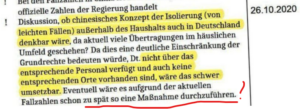 Oberverwaltungsgericht für das Land Mecklenburg-Vorpommern: „Soweit die Antragstellerin in der mündlichen Verhandlung vorgetragen hat, dass die Rolle des RKI während der Corona-Pandemie insbesondere hinsichtlich einer möglichen politischen Abhängigkeit und auch die vom Institut im Jahr 2020 herausgegebenen Risikobewertungen und Maßnahmeempfehlungen angesichts der Ende März 2024 veröffentlichten und zum Teil noch geschwärzten sog. „RKI-Protokolle“ neu bewertet und vor allem umfassend aufgearbeitet werden müssten, ist dies ohne rechtliche Relevanz für den vorliegenden Fall. Selbst bei Wahrunterstellung von diesbezüglichen Unregelmäßigkeiten gibt es weder aufgrund des Vortrags der Antragstellerin noch im Übrigen Anhaltspunkte dafür, dass der Verordnungsgeber im Zeitpunkt des Erlasses der Verordnung am 31. Oktober 2020 Kenntnis von den „RKI-Protokollen“ hatte und Veranlassung gehabt hätte, die Risikobewertungen und sonstigen Erkenntnisse des RKI in Zweifel zu ziehen. Der Senat hat dementsprechend entgegen der Ansicht der Antragstellerin auch weder Veranlassung, eine Auswertung der bereits veröffentlichten Protokolle vorzunehmen, noch eine mögliche Veröffentlichung ungeschwärzter Protokolle vor einer Entscheidung des Rechtsstreits abzuwarten.“ (2)