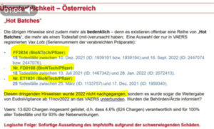 „💉📊 Der langjährige Corona-Analyst Uwe Kranz, Polizeipräsident a.D., zeigt auf, dass es offenbar völlig unterschiedliche Corona Impf-Chargen gibt, die verabreicht werden. Dies würde erklären, warum manche Impfungen milde bis gar keine Symptome bei den Probanden hinterlassen und manche – teiweise sogar direkt – tödlich sind. Außerdem untermauert es die These, dass die Menschen weltweit Testkaninchen für das ‚mRNA-Impf-Roulette‘ von Big Pharma sind: „Wer denkt, dass da überall die gleiche Brühe in der Spritze ist, der irrt sich.