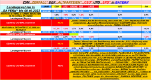 nur noch mit knapp etwas über 3 % über der „5 %- Klausel– Hürde und wurde von der Bevölkerung BAYERNS jetzt