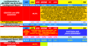 …. können heute auch MIT EINEM GEWISSEN STOLZ auf die „WAHLGEWINNER“ der Landtagswahlen am 08.10.2023 und auf „BAYERN“ aufschauen, das sind die „Demokratischen“ „VOLKS“ –