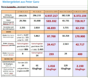 🇩🇪🇦🇹 Neues vom Jenischen❗️Liebe Freunde der Freiheit. Ich habe heute begonnen, einmal die Zahlen zu überarbeiten, und sie sind „Dunkelzifferbereinigt“ ❗️Grundlage sind die offiziellen Zahlen des ehrlichen PEI (31.03.22), und die Aussage des österreichischen Pharmazieverbandes, wonach nur 6% gemeldet werden. Hier mal vorläufig die Zahlen hochgerechnet zum 31.08. (31.03. + 5 mal März-Monatsdurchschnitt geteilt durch 6 mal 100 ) …. Über 6.372.000 GEN-Spritz-Nebenwirkungen, davon bei Kinder – HALLO bei Kinder 170.900, … und insgesamt 62.250 Verstorbene im zeitlichen Zusammenhang mit dem GEN-Spritzen, davon 400 Kinder ❗️Das sind alles Zahlen nur aus Deutschland …. Ich sage, das ist Mord, Euer Peter“