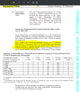 Selbst anhand der in den „örtlichen“ ‚Tageszeitungen“ damals noch veröffentlichten „Standesamtlichen Versterbenden- DATEN der Gemeinden und ‚Städte konnte man damals auch als „LAIE“ schon „zeitnah“ bereits erkennen, wieviele „ALTERS- UND PFLEGEHEIM- INSASSEN“ VOR DEN IMPFUNGEN „UNTER SCHON CORONA“ VERSTORBEN SIND UND WIE MIT DEN „IMPFUNGEN“ die „ÖRTLICHEN HEIMTOTEN“ PLÖTZLICH RAPIDE MIT DEN IMPFUNGEN GESTIEGEN SIND! (z.B. „unter Corona vor Impfungen“ im Monat ca. 1-3 Tote/pro A/PFLHeim und dann unter „IMPFUNGEN in 3 WOCHEN 6 Verstorbene, hochgerechnet sind das im Monat 8,8 TODESFÄLLE im A/PFLHeim! (Hier Vergleich A/PFLHeime im Landkreis Lörrach in Südbaden)