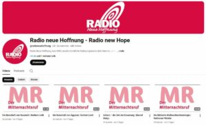 https://www.youtube.com/@ Radio Neue Hoffnung . https://de.wikipedia.org/wiki/ Wim_Malgo Zitat daraus: „Wim Malgo * 3. Oktober 1922 in Maassluis, Niederlande † 8. August 1992 in Dübendorf, Schweiz war ein Schweizer Evangelist, Prediger und Schriftsteller und Gründer des Missionswerks Mitternachtsruf. Häufig von ihm angesprochene Themenfelder waren Israel und die Endzeit. Leben Malgo wuchs in Leiden auf, wurde christlich erzogen und begann eine Ausbildung zum Matrosen, brach diese aber