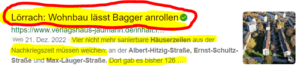 Was ist in Lörrach im Vorfeld zu „WÖLBLINSTR. jetzt“ schon geschehen bzw. geschieht im Moment parallel Stand Februar 2023 – Es werden bereits Wohnblocks in der „NORDSTADT“ abgerissen mit Baujahren vergleichbarer Zeit – und das bei der heutigen „FLÜCHTLINGSEXPLOSION“ nach Lörrach!!!!!!