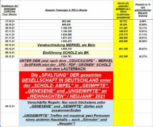 Der „CORONA- TOD“ unter den parallel laufenden „CORONA- MASSEN- IMPFUNGEN“ in DEUTSCHLAND WÜRDE DAMIT „INS HÖCHSTE PANDEMIE- SCHLIMMSTE“ ansteigen?