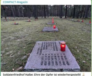 “ Halbe: Hunderte beteiligen sich an Kerzenaktion auf dem Waldfriedhof! 🕯️ 🕯️ Bei einem skandalösen Vorgang hatte die Polizei in Halbe Mitte letzter Woche 5000 Kerzen, mit denen auf dem Waldfriedhof an die Gefallenen der letzten großen Schlacht des 2. Weltkrieges erinnert wurde, entfernen lassen. COMPACT hat darüber ausführlich berichtet: