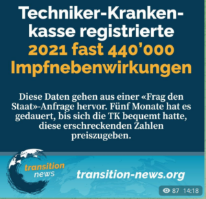 https://transition-news.org/Techniker-Krankenkasse-registrierte-2021-fast-440-000-Impfnebenwirkungen – und das ist Ergebnis nur einer von unzähligen anderen privaten und auch den gesetzlichen Krankenkassen!!!!!