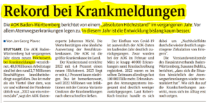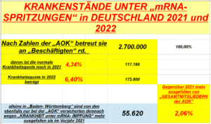„KRANKENSTAND“ im Jahr 2022 in BADEN- WÜRTTEMBERG bei 6,40 % (siehe oben)……