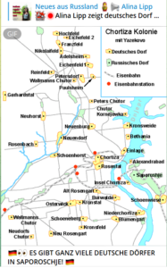 Es gibt in Saporoschje seeeehr viele Deutsche Dörfer, nur sie wurden nach dem Weltkrieg umbenannt. Nicht viele kennen die damalige Geschichte und die, die es wissen reden nicht gerne mit Deutschen darüber, weil sie damals 1943/44 vertrieben wurden und jetzt befürchten die Ukrainer sie würden ihre Häuser mit den großen Grundstücken wieder zurück haben wollen. Deswegen ist es sehr vielen Russland-Deutsche nicht egal was da passiert. Unsere Vorfahren kommen von da! Liebe Grüsse und vielen Dank für deine Arbeit.“